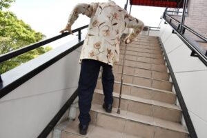 階段をよいこらしょって