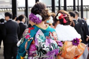 式の当日に振袖を着てと記念写真撮影は前撮りした子、